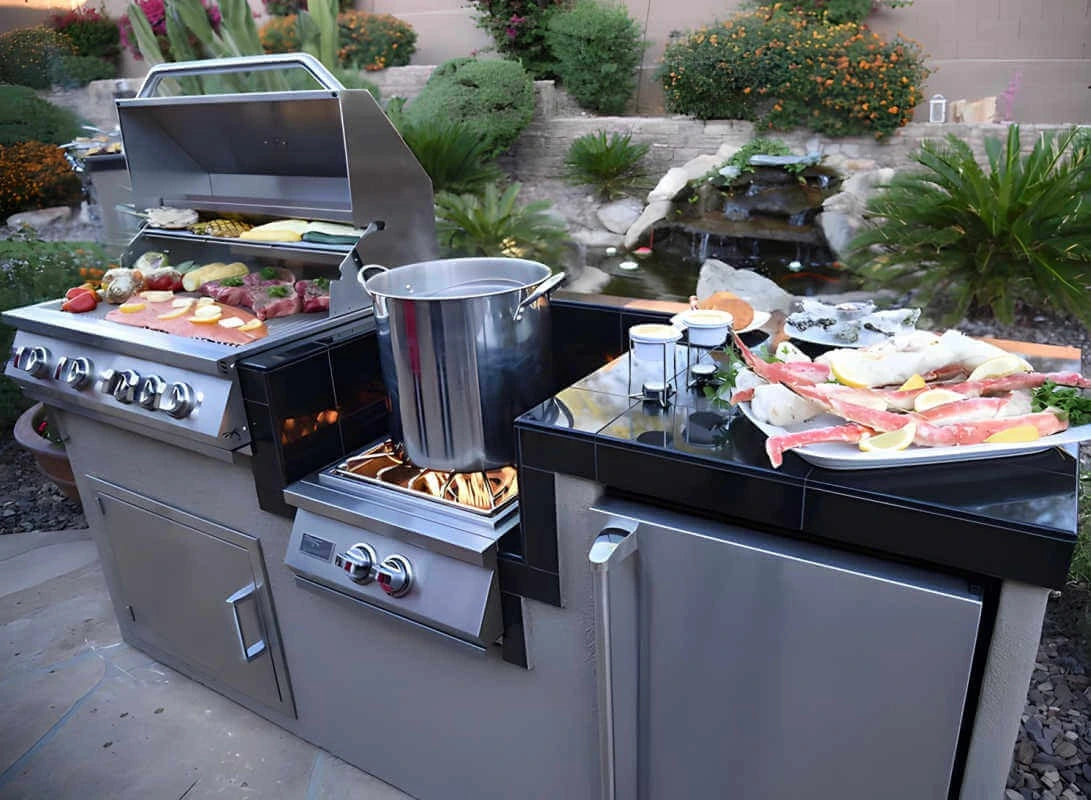 • Grill and refrigerator come pre-installed in the BBQ island.