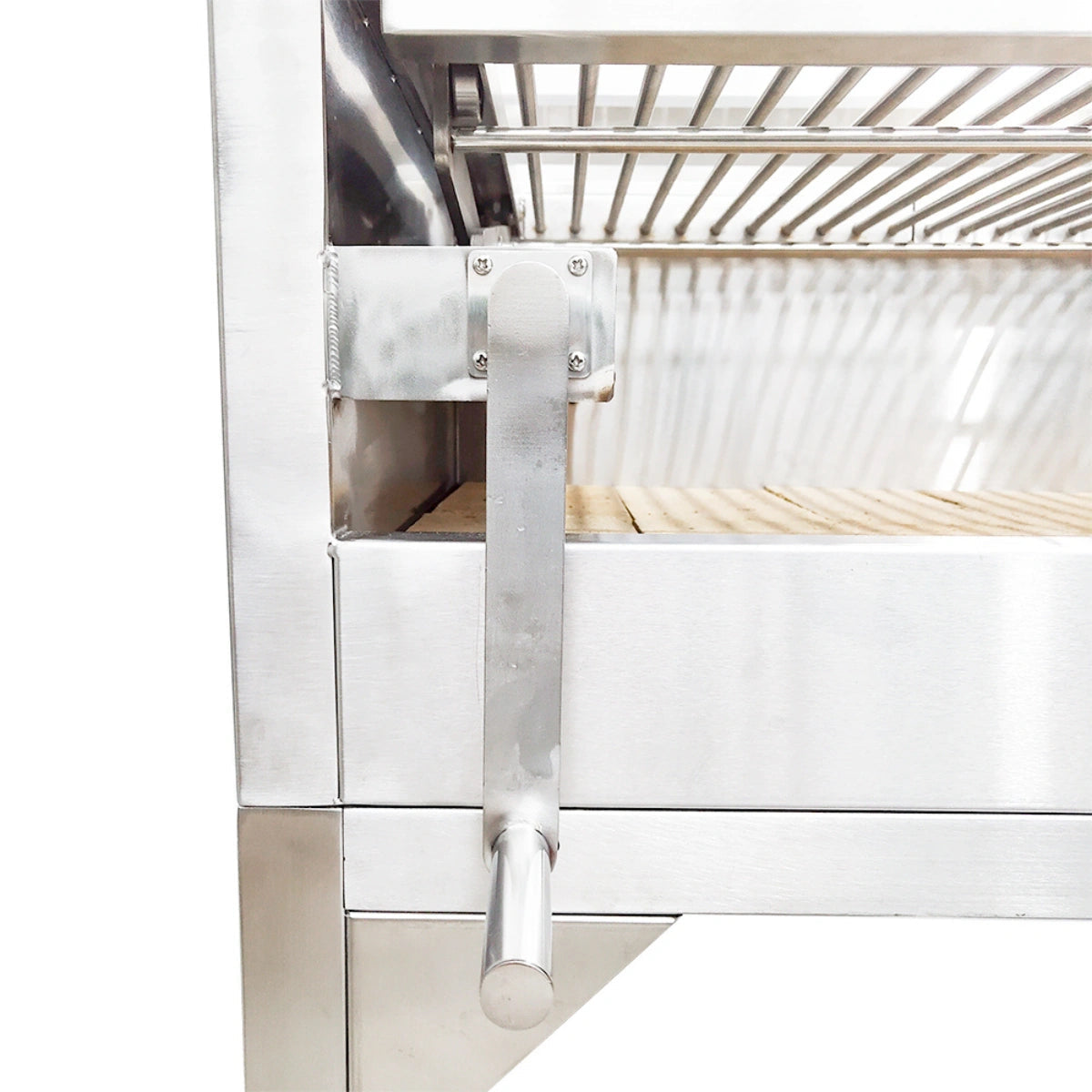 Santa Maria Adjustable Grate System – Easily raise or lower grates to fine-tune temperature over live fire.